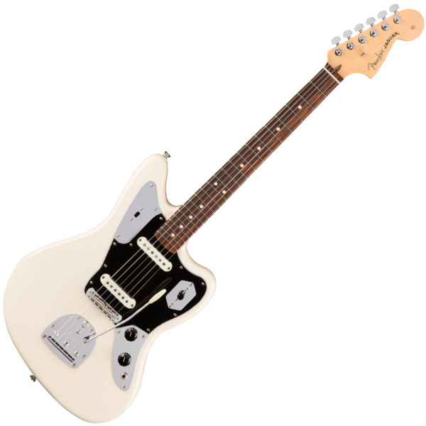 Fender American Professional Jaguar Olympic White – An eye-catchingly adventurous design—an exercise in chrome, plastic and wood—the Jaguar guitar’s delightfully off-kilter aesthetics and unique sound made it a darling of underground artists from the ’70s to today. Though it was the pinnacle of guitar technology when it was released in 1962, time (and technology) marches on so we updated the Jaguar with modern features and materials, hot-rodding it for today’s players. The result? The American Professional Jaguar—a dangerous instrument with bite.
